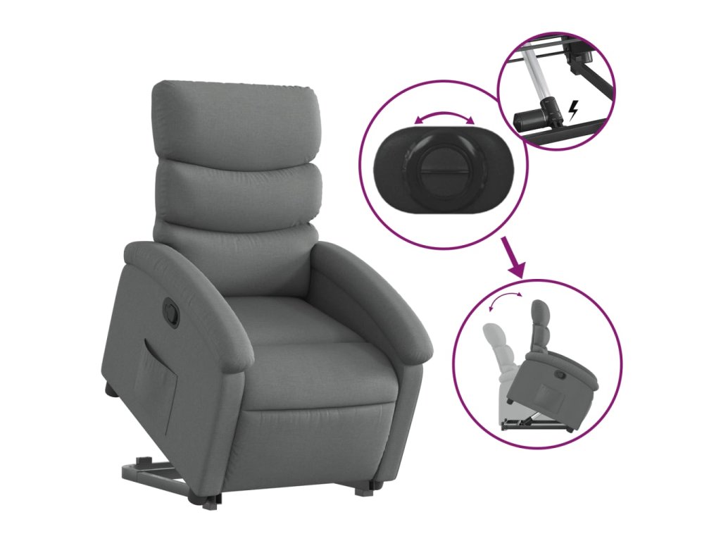 - Funkce sklápění: Toto polohovací křeslo pro seniory je vybaveno elektromotorem pro jeho zvedání. Vzhledem k funkci zvedání, která tlačí celé křeslo nahoru, můžete snadno vstát, aniž byste zatěžovali záda a kolena.