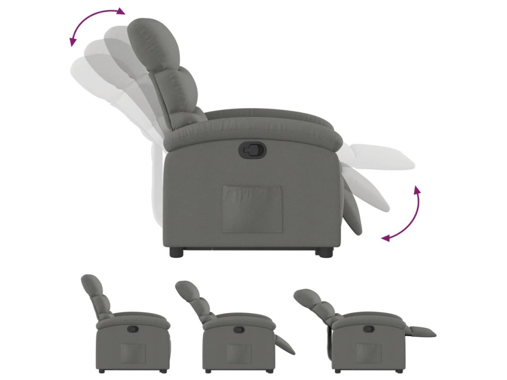 - Funkce ručního sklápění: Toto polohovací křeslo má na pravé straně páčku. Jednoduchým zatažením za páčku můžete ručně nastavit opěrku nohou a opěradlo do libovolné polohy podle svého pohodlí. Tato funkce umožňuje maximální náklon 135 stupňů. Opěradlo se navíc může snadným zatažením za páčku rychle vrátit do původní polohy.