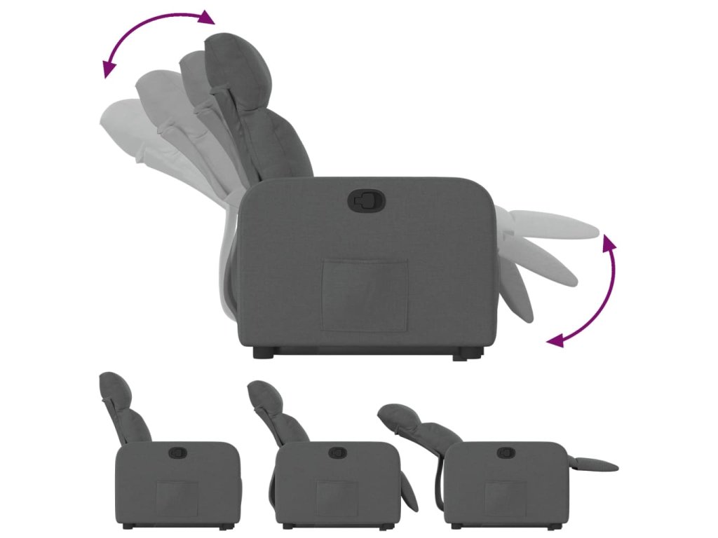 - Funkce sklápění: Toto polohovací křeslo pro seniory je vybaveno elektromotorem pro jeho zvedání. Vzhledem k funkci zvedání, která tlačí celé křeslo nahoru, můžete snadno vstát, aniž byste zatěžovali záda a kolena.