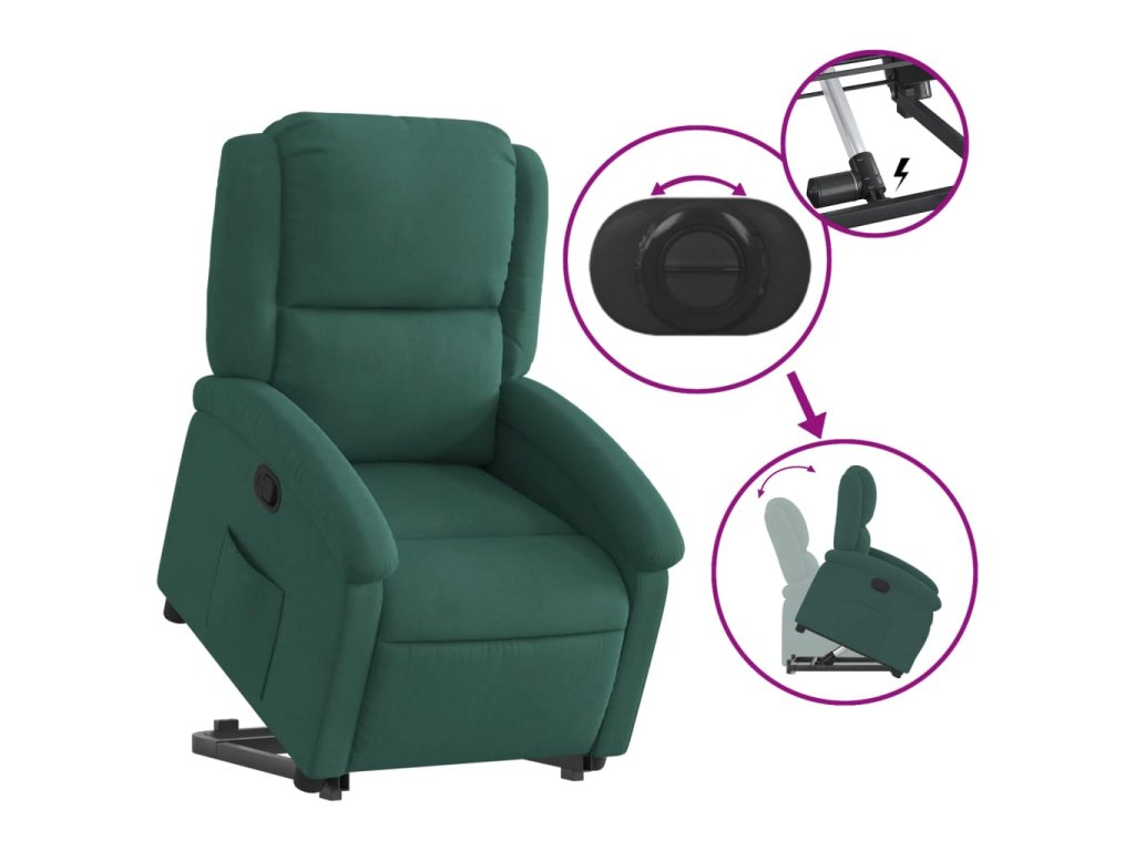 - Funkce sklápění: Toto polohovací křeslo pro seniory je vybaveno elektromotorem pro jeho zvedání. Vzhledem k funkci zvedání, která tlačí celé křeslo nahoru, můžete snadno vstát, aniž byste zatěžovali záda a kolena.