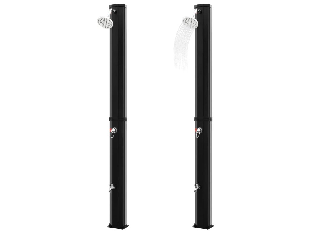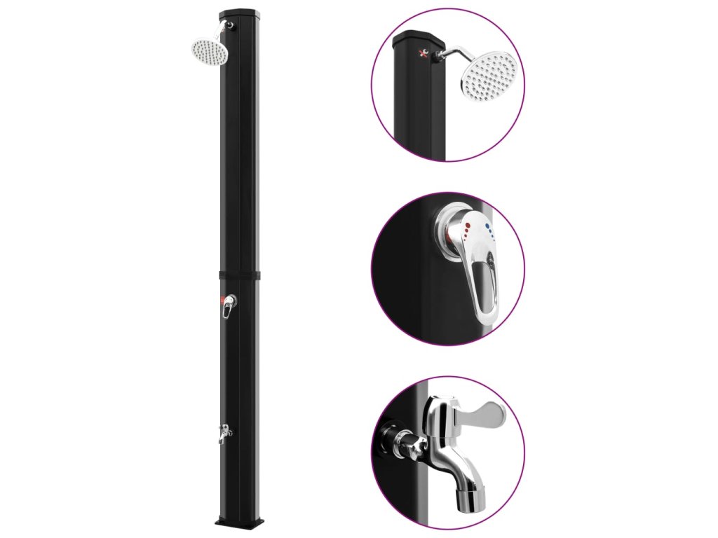 Solární energie, kterou absorbuje, ohřeje vodu uvnitř nádrže a nabídne vám perfektní sprchu! Vodu je možné ohřát až na 60 °C. Je vybavena nádrží na vodu o objemu 35 l. Součástí je také kohoutek s dalším praktickým využitím. Součástí balení jsou také šrouby pro pevné a stabilní upevnění sprchové základny na jakýkoli rovný pevný povrch. Tato solární sprcha s elegantním a exkluzivním vzhledem se hodí do vaší zahrady nebo k bazénu.