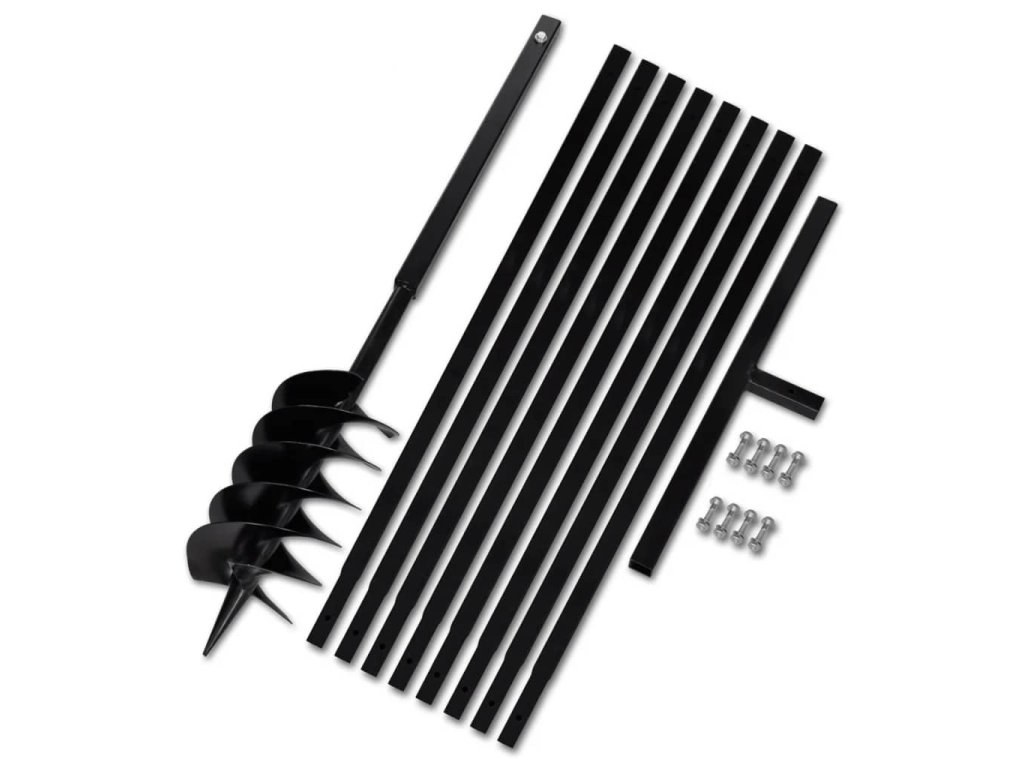 Balení obsahuje zemní vrták, rukojeť, 8 ks prodlužovacích nástavců a šrouby.
