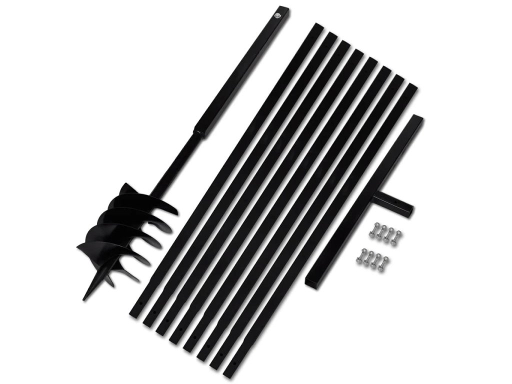 Balení obsahuje zemní vrták, rukojeť, 8 ks prodlužovacích nástavců a šrouby.
