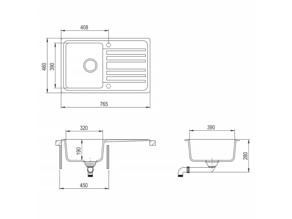 - Rozměry dřezu: 320 x 390 x 190 mm (D x Š x D)
